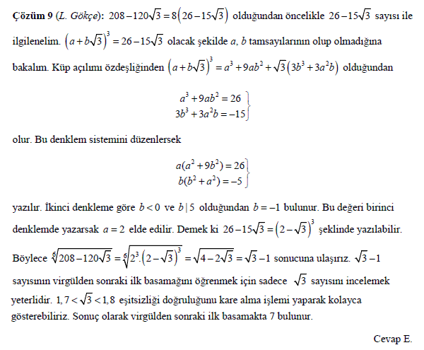 Ynt: 2011 - 16. Antalya Matematik Olimpiyatları Soruları
