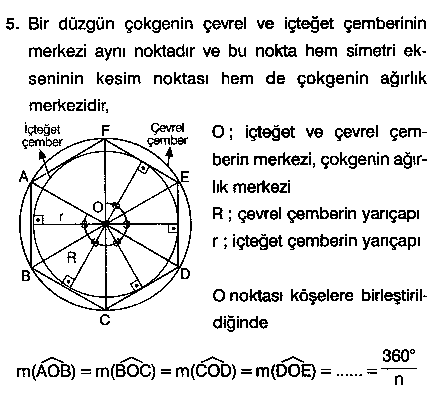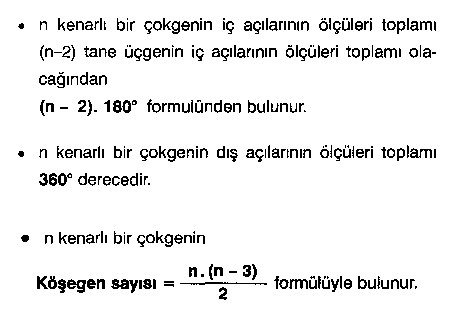 Teorem.Herhangi bir konveks çokgende iki iç açının ölçüleri toplamı bu açılara komşu olmayan dış açıların toplamına eşittir.