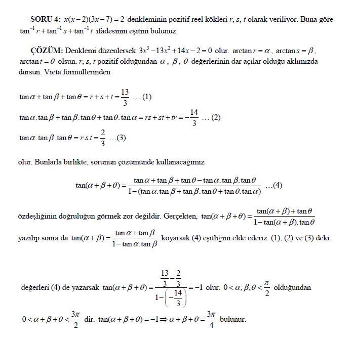 4. problemimiz cebir ve trigonometri karışımı fakat hoş bir soru olduğu için bunu da ilave ediyoruz ...