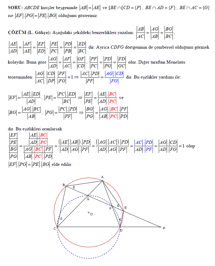 Uğraştığınız için teşekkür ederim. Düşündüğünüz gibi soru iki yönlü yani EF.PG = PE.BG <=> AB = AE.