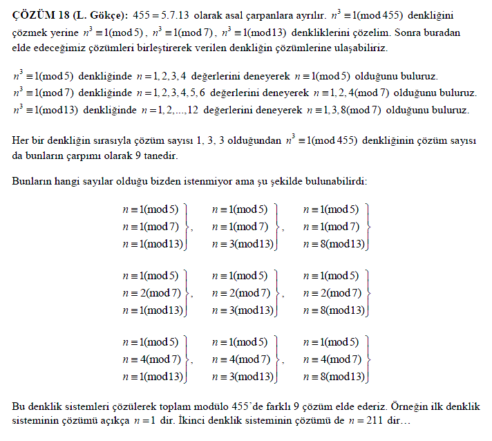 bu türde soruların çözümü ve daha fazlası Fethi Çallıalp'in Sayılar Teorisi kitabında ayrıntılı bir şekilde anlatılıyor. İnce bir kitaptır ama çok faydalı bir eser olduğunu düşünüyorum ...