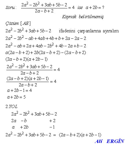 Gönderen Konu: çarpanlara ayırma  (Okunma sayısı 10661 defa)
