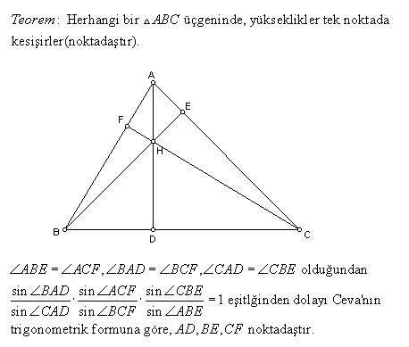 Problem2. Herhangi bir üçgenin yüksekliklerinin (yada uzantılarının) tek noktada kesiştiğini (noktadaş olduğunu) ispatlayınız.